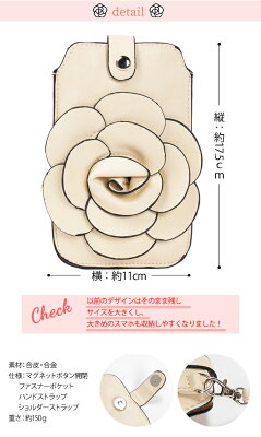 カメリア ポーチ スマホポーチ スマホポシェット ショルダー ポシェット レディース 斜めがけ スマホ ポーチ 薔薇 携帯 iphone6 iphone7 xperia 携帯ポーチ スマートフォンポーチ かわいい 送料込み